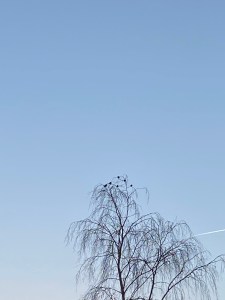 Starlings are back. Keeping their eyes on the sunrise.