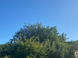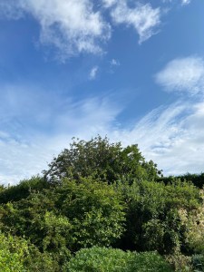 The berries on the Rowan begin to turn orange. They will soon be red.
