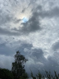 And then it rained … for another two minutes! Sharp and sudden! It was warm – steam came from the roof of the garden studio after each shower, but hubby decided that a rerun of episode 1 of Inspector Morse was preferable to a day deheading roses!