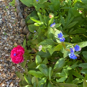 The slightest of breeze and a borage flower landed on a peony.